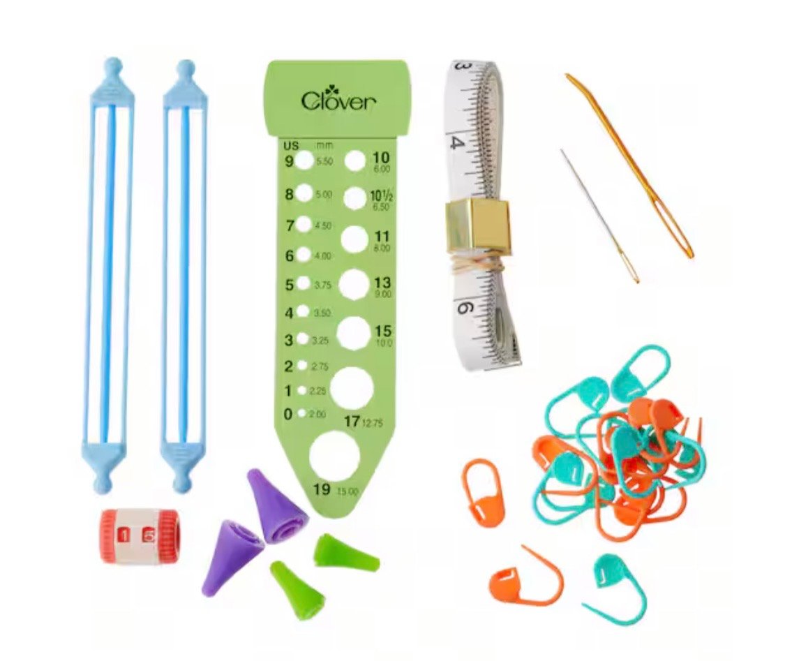 - Includes basic knitting tools